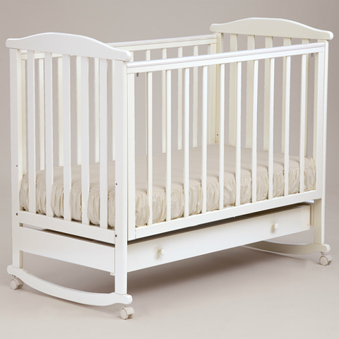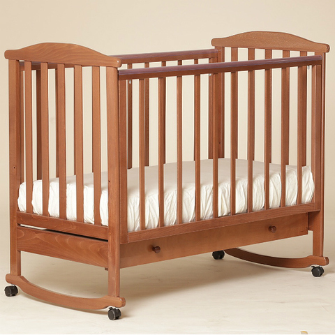 В первые месяцы кроватку, можно использовать как качалку. Позже, когда необходимость в этом исчезнет, установите колесики, зафиксировав этим кроватку.