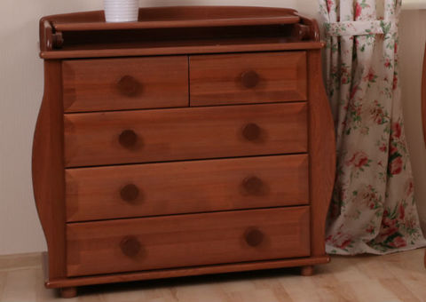 Пеленальный комод Лель БИ 36 «Бриллиант» компании КубаньЛесСтрой с откидным пеленальным столиком и защитными бортиками. Когда необходимость в пеленальном столике отпадёт, он продолжит служить уже подросшему ребенку. Тонировка и бесцветный глянцевый лак обеспечивают защиту дерева и придают декоративный шик и богатство дизайна этой модели. 5 вместительных выдвижных ящиков на шариковых направляющих позволят в лёгкой доступности хранить всё необходимое для ребенка. Габаритные размеры в собранном виде: Ширина: 1000 мм Глубина: 548 мм Высота: 932 мм
