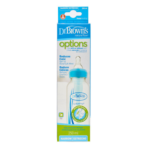 Бутылочка Dr.Brown's SB81405 противоколиковая с узким горлышком, синяя, 250 мл. - не содержит бисфенол А, поливинилхлорид, свинец и фтолаты. Уникальная вентиляционная система препятствует формированию пузырьков воздуха и образованию вакуума в бутылочке, благодаря чему: исключается заглатывание воздуха ребенком в процессе кормления; снижается вероятность колик, срыгивания, газов, воспаления среднего уха; сводится к минимуму окисление грудного молока, что позволяет сохранить важные питательные вещества и витамины С, А и Е; решается проблема отказа от материнской груди в силу схожести процессов сосания из бутылочки и из груди.