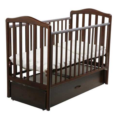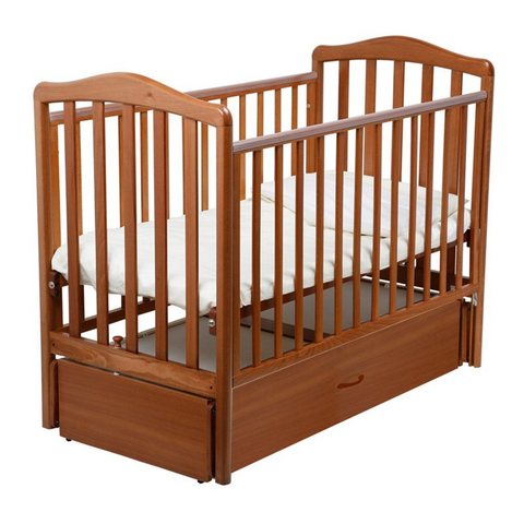 Маятник поперечного качания с фиксацией поможет быстрее уложить вашего малыша. Когда малыш подрастет, кроватку можно превратить в диванчик сняв переднюю стенку и опустив на уровень ниже подматрасник.
