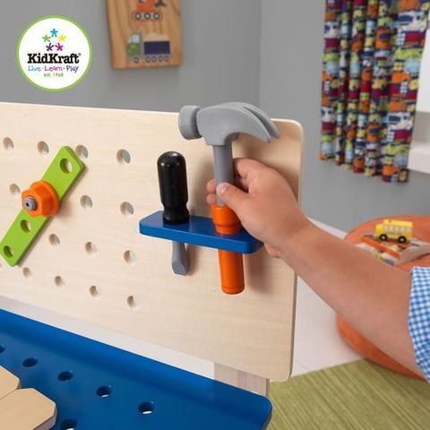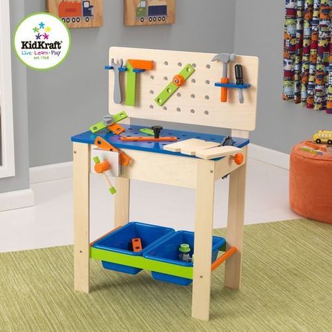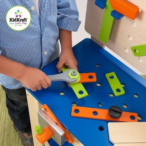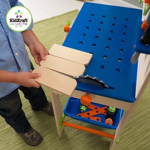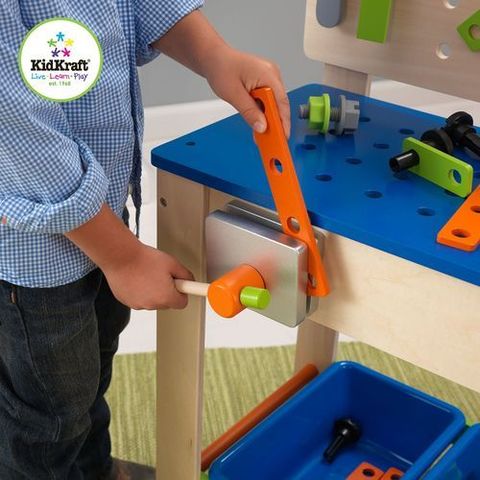 В комплекте: - верстак; - инструменты; - крепеж; - 2 ящика для хранения. Возраст: от 3 лет Подходит: для мальчиков Материал: дерево, пластик