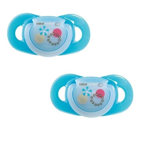 Комплект из 2-х латексных пустышек Bebe Confort серии Safe Dummiies с кольцом. Уникальная форма, повторяющая форму неба, и минимальная толщина соска у основания (всего 3 мм) снижает давление на десны и молочные зубки малыша до 90%.