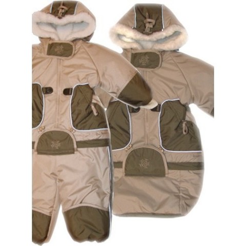 Удобная зимняя модель Золотой Гусь "Зимушка". Модель 3 в 1 - мешок, комбинезон, курточка (трансформируется по низу, отстегивается на молнии). Предназначена для детей с 0 месяцев до 1 год. Комбинезон одевается как мешок примерно до 5 месяцев (мешок имеет длину 74 см), а с 5 месяцев до 1 года, как комбинезон (длина 80 см). В капюшоне по краю вшита резинка, которая предотвращае продувание.Верх комбинезона сделан из непромокаемой синтетической ткани "ТАСЛАН", защищающей от дождя и ветра.Внутри мех - счёс из натуральной овечьей шерсти на синтетической основе (состав: 50% овечья шерсть, 50% полиэстер), что предотвращает скатывание плюс теплосберегающая мембрана на основе холлофана плотности 200. Дополнительный клапан для защиты от ветра, ножки и ручки закрываются путем отворотов.