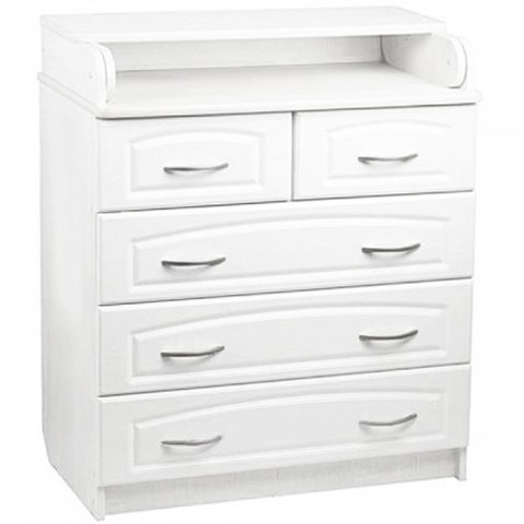 Комод с пеленальным столиком Антел Ульяна 6 имеет 5 вместительных ящика на роликовых направляющих. Его верхняя крышка откидывается и превращается в полноценный пеленальный столик для пеленания ребенка. Когда ребенок повзрослеет, надстройку можно снять. Задняя часть комода украшена фигурной спинкой, а для удобства перемещения по комнате предусмотрены колесики. Корпус комода изготовлен из ДСП и отделан ламинированной плёнкой под цвет различных пород дерева, все рабочие кромки усилены ПВХ-шкантом. Характеристики - Материал корпуса: ЛДСП; - Материал фасада: МДФ с покрытием ПВХ; - Встроенный откидной столик для пеленания; - 5 вместительных выдвижных ящика; - 4 колесика; - Фигурная спинка; - Спил под плинтус отсутствует.