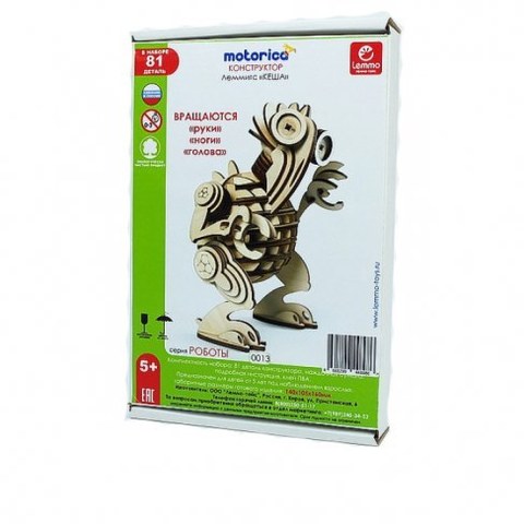 Деревянный конструктор 'Леммитс Кеша' из серии 'Роботы' от торговой марки Lemmo-toys состоит из 81 детали. Все детали этого уникального конструктора изготовлены из натуральной древесины и легко соединяются между собой при помощи клея ПВА. Соединив все части конструктора, ребенок сможет получить футуристичную фигуру Кеши, у которой подвижные конечности и забавный вид. С готовой фигурой можно придумать множество игровых сюжетов, а также украсить ей свою любимую полку с игрушками. Количество деталей: 81 шт. Комплект: детали конструктора, наждачная бумага, клей ПВА. Размер упаковки: 5.5 х 14.5 х 22 см. Размер собранного конструктора: 14 х 10.5 х 16 см.