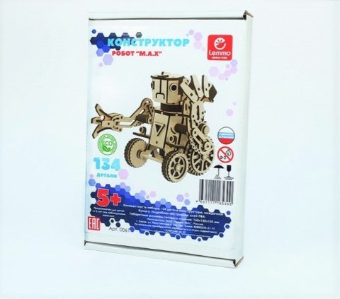 Деревянный конструктор 'Робот-Макс' станет прекрасным подарком для юных любителей техники. Конструктор состоит из 134 деталей, которые предстоит соединить юному строителю. Для того, чтобы собрать такого робота ребенку понадобится клей ПВА, с помощью которого он будет соединять его составные части, а наждачная бумага позволит убрать шероховатости на поверхности деталей. Деревянный конструктор поможет ребенку развивать логическое и пространственное мышление, совершенствовать моторику рук, а также научит ребенка усидчивости и дисциплинированности. Количество деталей: 136 шт. Комплект: детали конструктора, наждачная бумага, клей ПВА. Размер упаковки: 3.5 х 14.5 х 22 см. Размер собранного конструктора: 14 х 15 х 13.5 см.