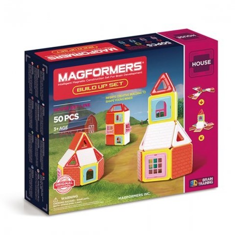 Набор Magformers Build Up порадует маленьких архитекторов. В нем представлены различные строительные аксессуары: крыши; стены; двери; окна. C этими элементами легко построить надежный и уютный дом.