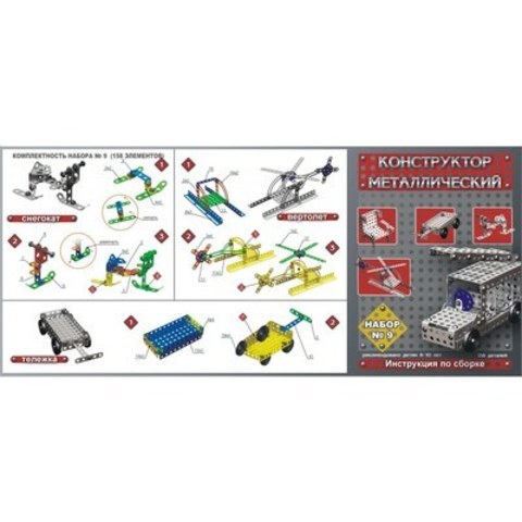 Конструктор металлический №9"Для уроков труда"- лучший подарок ребенку. Он состоит из 158 надежных, прочных и качественных металлических деталей - скоб, панелей, колес, планок, пластин, уголков, винтов, гаек, отвертки и гаечного ключа! Такие"взрослые"элементы понравятся ребенку и разовьют умение работать с инструментом, что, несомненно, понадобится им, когда подрастут. В комплект входит подробная красочная инструкция, руководствуясь которой можно собрать пожарную машину, кресло, снегокат, вертолет и тележку. Но нет необходимости ограничиваться инструкцией! Из набора можно создать практически все, что только пожелает и вообразит ребенок!