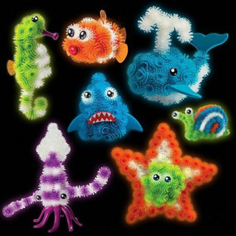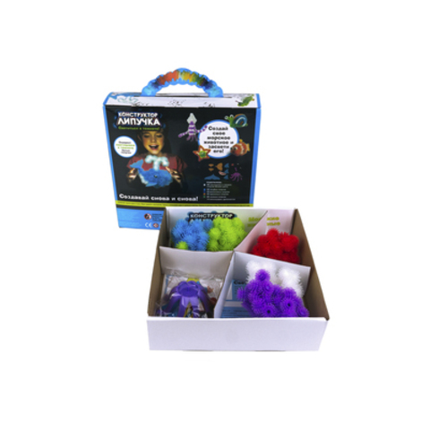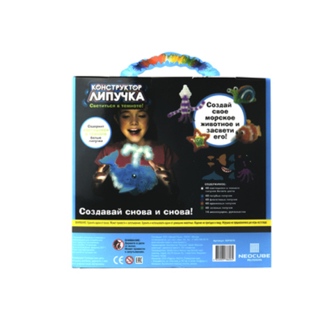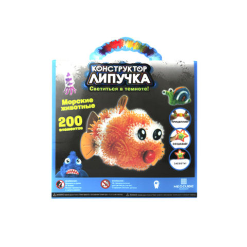 Конструктор"Липучка","Морские животные"включает в себя шарики-репейники разных цветов, которые крепятся между собой по принципу липучки. Светятся в темноте! Элементы просто сцепляются при соприкосновении друг с другом. Можно создавать различные объемные конструкции. С помощью конструктора ребенок может осуществить мечты и воплотить смелые фантазии. Готовые фигуры легко и быстро разбираются – конструктор вновь готов к созданию новых форм. После игры в конструктор рабочее место легко убирается. Ребенок просто собирает шарики-«колючки» в большой шар, как снежный ком. Так же, ребенок может собрать любую фантазийную фигурку. Процесс скрепления деталей между собой очень прост-достаточно просто приложить шарики друг к другу, и расположенные на их концах крючки сцепят их между собой. Для создания фигурок из деталей конструктора"Липучка"не нужны никакие дополнительные приспособления и инструменты-все необходимое уже есть в наборе. Содержимое упаковки позволит создать множество потрясающих игрушек. Игрушка предназ