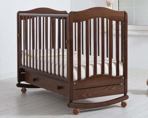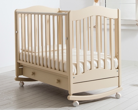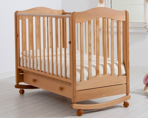 Детская кроватка-качалка «Ванечка» фабрики Гандылян с классическими визуально простыми линиями придадут комнате особый тонкий стиль. Дуги-полозья для раскачивания имеют ограничители качания, они вместе со сбалансированным центром тяжести делают амплитуду раскачивания кроватки безопасной для малыша. Две пары колес на ножках помогут зафиксировать кроватку от раскачивания, а также облегчат ее перемещение в комнатном пространстве.