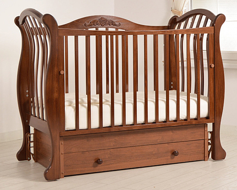 Детская кроватка «Габриэлла Люкс» фабрики Гандылян прекрасное украшение детской спальни, и спокойный и здоровый сон вашего малыша. Эта модель порадует вас своим качеством и функциональностью. Надежный универсальный маятниковый механизм поможет легко и быстро укачать ребенка. Направление выбирается при сборке кроватки: продольное «голова-ножки» или поперечное «боковое качание». Для придания устойчивости кроватке во время бодрствования малыша достаточно просто зафиксировать маятник. Гладкое лаковое покрытие поверхностей кроватки защитит кожу малыша от получения травм. Для покрытия используется лак на водорастворимой основе – он абсолютно безопасен для младенца. Вместительный ящик для белья в основании выполнен из ламинированного ДСП и снабжен шариковыми направляющими.