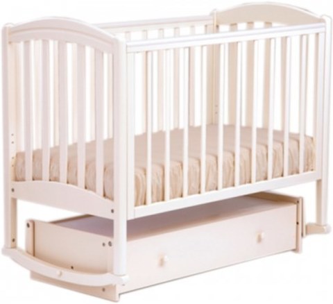 Характеристики: -маятник поперечный с возможностью фиксации -закрытый выдвижной ящик для детского белья и игрушек -передняя боковина опускается и фиксируется в 2-х положениях -две планки передней стенки снимаются -при опущенной авто стенке ящики кроватки не доступны для ребенка -силиконовые накладки на боковинах кроватки, предотвратят травмы зубов и десен у малышей -2 уровня положения ложа
