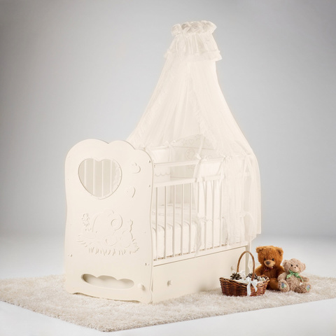 Кроватка детская Слоненок маятник поперечный с ящ (слоновая кость)