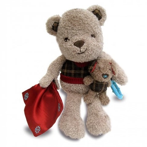 Мягкая игрушка 'Медвежонок и Щенок' от бренда Little Bird Told Me понравится многим деткам. Милый мишка носит с собой теплое красное одеяльце, которое можно упаковать в рукавчик, а если малыш потянет за маленького песика, заиграет веселая мелодия. Игрушка изготовлена из приятного на ощупь и безопасного искусственного меха, а свитерок сшит из клетчатой ткани.