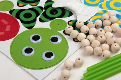 Что входит в комплект: Деревянные бусины; Картонные шаблоны; Нить; Ворсистые проволоки; Пластиковые соломинки; Вращающиеся глаза; Двусторонний скотч; Подробная инструкция.
