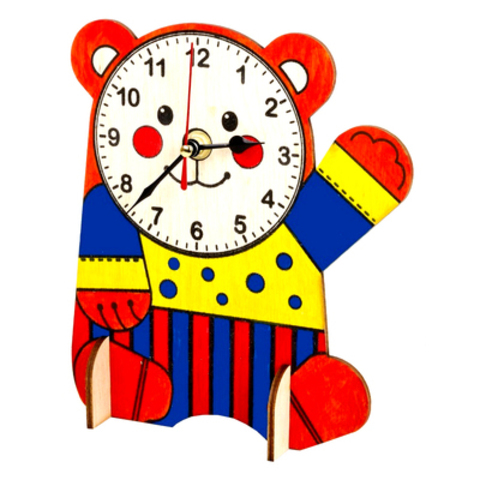 Данный набор рассчитан на то, чтобы ваш малыш самостоятельно собрал часы с механизмом. Сделав такой шедевр своими руками, у него обязательно появится интерес к тому, как пользоваться этими чудесными и милыми часами, то есть выучить время. Набор рассчитан для возрастной категории от пяти лет. В него входят: 1. Деревянная заготовка для часов в виде медвежонка. 2. Набор для раскрашивания часов – акриловые краски трех цветов, кисточка. 3. Часовой механизм, стрелки. 4. Подробная инструкция по сборке. Деревянные часы для сборки являются экологической игрушкой, так как выполнены из природных материалов. Часы «Медвежонок» приоткроют вашему ребенку дверь в этот неизведанный мир. Он сможет воочию увидеть, как устроен часовой механизм, и сам создать полезный предмет интерьера, который долгие годы будет служить вам воспоминанием о его детском достижении.