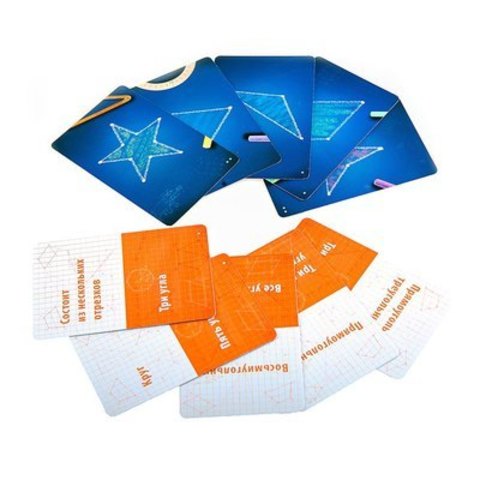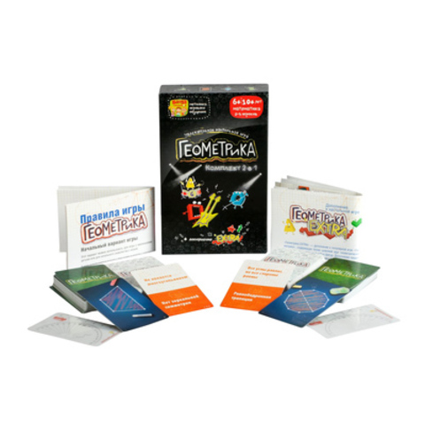 Геометрика, Геометрика EXTRA. Геометрика — позволяет легко освоить все геометрические понятия, рассматриваемые в программе начальной школы, и даже больше! При этом в неё с энтузиазмом играют и дошкольники, буквально на лету схватывая даже непростые геометрически понятия. Ведь названия, термины и понятия не нужно зубрить — их нужно тут же применять в игре! В комплекте: 72 прямоугольные карты из картона покрытые лаком, иллюстрированные правила, пластиковая карточка транспортир. Геометрика EXTRA — набор дополнительных карточек к базовой игре «Геометрика», который включает более сложные геометрические понятия, новые фигуры и экшн-карты. Карты дополнения предназначены для использования совестно с базовой игрой, они разбиты на три уровня сложности и их можно вводить в игру поэтапно. В комплекте: 72 прямоугольные карты из картона покрытые лаком, иллюстрированные правила, пластиковая карточка транспортир.