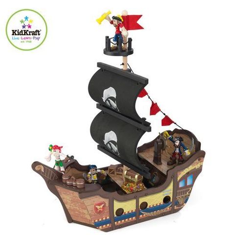 В комплекте: - крепость; - корабль; - сундук; - 4 пирата; - инструкция. Возраст: от 3 лет Подходит: для мальчиков Материал: дерево, пластик