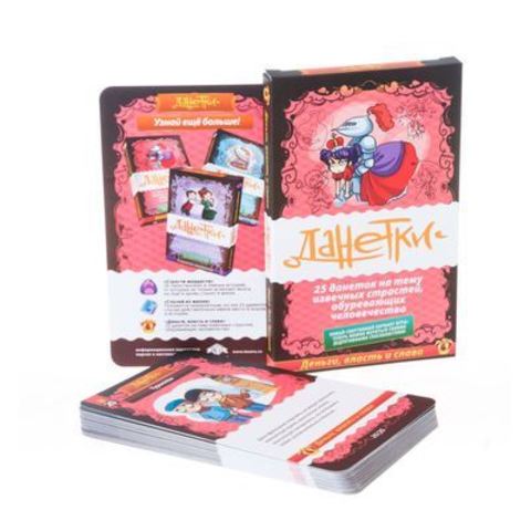Правила игры: ведущий игры рассказывает интереснейшую ситуацию. Другие игроки задают вопросы, чтобы выяснить, что же произошло на самом деле. Например: пилот был в самолете, выпрыгнул и не разбился, и начинается игра, остальные игроки задают вопросы, стараясь, чтобы ответы помогли найти ответ. Ответ на вопрос будет «да» или «нет». В наборе настольной логической игры 21 данетка на тему извечных страстей, обуревающих человечество, а также карточка с правилами игры. Истории отгадываются очень быстро, игра настольная может отлично развлечь в дороге. Настольная игра для 2-8 игроков.