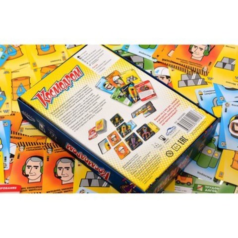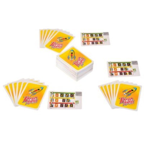 В этой игре вам нужно построить ракету, собирая её из частей. Настолка Космодром поможет развить внимательность, системное мышление и волю к победе, а это в любом случае приведёт к успеху и подарит уйму удовольствия в процессе. Комплектация: 140 игровых карт, 4 карты-памятки, правила игры. Правила игры: Подготовка: Отведите каждому игроку место, достаточное для размещения перед ним карт в соответствии со схемой игрового поля. У каждого игрока будут свои личные игровые зоны. Отведите в середине стола место для двух стопок с игровыми (ещё не открытыми) и уже сброшенными картами, а также для зоны стартовой площадки. Раздайте каждому игроку по карте с подсказками. Отложите 4 карты стартовой площадки в сторону. Перемешайте оставшиеся карты и раздайте по 6 штук каждому игроку. Смешайте 4 карты стартовой площадки с нижней половиной оставшихся карт. Положите карты лицом вниз на середину стола — это будет стопка с игровыми картами. Если они закончатся, нужно перемешать стопку сброшенных карт и снова использовать её как стопку игровых карт. Первым ходит тот игрок, которому больше других не терпится приступить к сборке! Ход игры: Ход каждого игрока состоит из следующих шагов в указанной последовательности: Продвигаются все карты стартовой площадки, находящиеся в игровых зонах текущего игрока (обязательно). В следующую игровую зону продвигаются завершённые ракеты (по желанию). В каждой игровой зоне для продвижения можно выбрать только одну ракету. Берётся столько карт, сколько требуется для достижения максимального количества карт на руках (6 штук). Одну карту можно взять сверху стопки сброшенных карт, но остальные должны браться из стопки игровых карт. Если была взята любая из карт стартовой площадки, она немедленно размещается в левой части сборочного цеха игрока, а на замену ей берётся ещё одна карта. Выкладывается столько карт, сколько захочет игрок. К картам, которые можно выложить, относятся любые карты, которые могут быть размещены в соответствии с обычными правилами размещения, или карты, действие которых можно полностью выполнить. Если с рук выложены все карты, из стопки игровых карт вновь немедленно набирается максимальное количество карт (так можно делать только один раз за свой ход). Сбрасывается столько карт, сколько пожелает игрок. К концу хода у игрока не может остаться карт больше, чем допускается максимальным количеством карт на руках. Если стопка игровых карт заканчивается, перемешивают сброшенные карты и складывают из них новую стопку игровых карт.