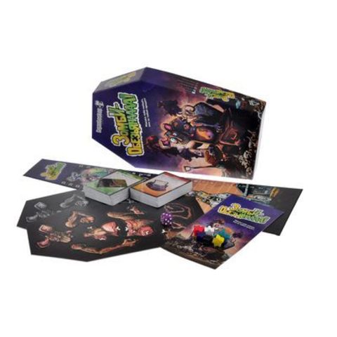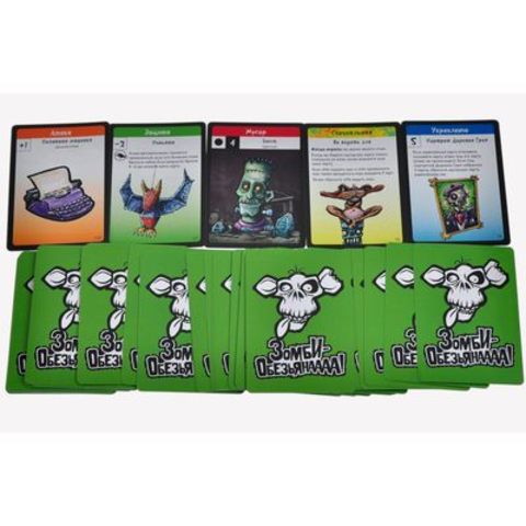 Они говорили, что работа на свалке будет весёлой. Свежий воздух, дружелюбные коллеги, и можно оставлять себе все жестянки, которые сможете найти. Ага, как же! И вот в один прекрасный день вы сидите на краю саркофага, балансирующего на гильотине, застрявшей в гигантской паутине, стараясь убраться как можно дальше от кровожадной макаки-упыряки, которая только что поймала одного из ваших коллег. Этого точно не было в трудовом договоре! Жуткий туман и постоянный человеческий вой тоже ни капли не помогают. «Зомби-обезьянаааа!» — это пародийная карточная игра, в которой вам нужно строить башни из мусора, чтобы убраться от воскресших макак. Состав игры: 120 карт — всё то интересненькое, что можно найти на свалке ночью; 6 разноцветных фишек игроков для вас и ваших друзей; фишка макаки-упыряки — она уже ищет вас; поле набора высоты, чтобы знать, кто из игроков где; 7 частей макаки-упыряки — когда они соберутся вместе, лучше вам быть подальше! Поле сборки макаки-упыряки; кубик для сложных ситуаций; правила.