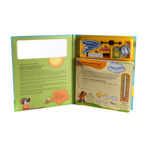 Книга с 13 магнитными и гладкими страницами с заданиями и играми (для письма и приклеивания карточек) + 20 магнитных карточек, 2 фломастера, ластик, указательная стрелка для заданий