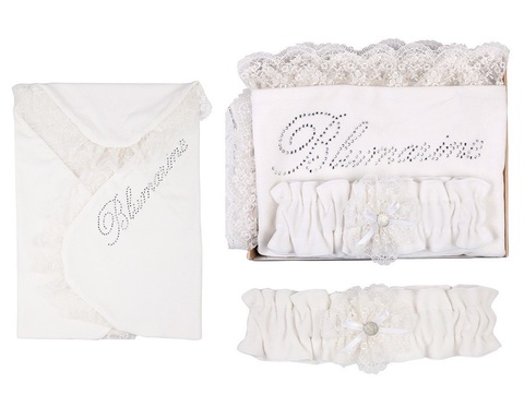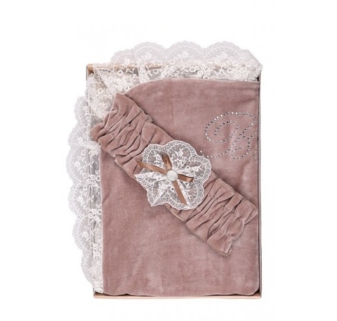 Плед велюровый на выписку Мой Ангелок Сказка ПД 701. Изготовлен из велюра и высококачественного премиального трикотажа "интерлок". Его отличает особое сложное переплетение петель, благодаря которому создается очень прочная и надежная ткань. Изделия из ткани интерлок не вызывают аллергии, хорошо держат форму, устойчивы к истиранию и износу, без труда стираются и разглаживаются, не садятся и не теряют вид в процессе носки. В качестве наполнителя для конверта используется современный материал файберпласт, который превосходной сохраняет тепло, дарит комфорт и уют в любую погоду. Декорирован конверт элегантным кружевом и надписью из страз.