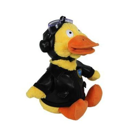 Утенок Ас - поющая игрушка, выглядит лихим пилотом: чёрная кожаная куртка, лётная шапка и лётные очки. Он готов к полёту. Чтобы он спел очень оригинальную и зажигательную песню группы «Красная плесень» – «Песня лётчика аса», достаточно нажать на левое крыло утёнка. При этом утёнок танцует и открывает клюв в такт! «Утёнок Ас» – это отличный подарок для людей с чувством юмора и любителей музыки в стиле панк-рок! Такой оригинальный сувенир всем поднимет настроение на любой вечеринке. Размеры подарка: 23 х 28 х 16 см.