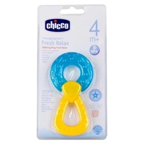 Прорезыватель-игрушка Chicco Fresh Relax "Кольцо", 4месяца + - создан для стимуляции и освежения десен малыша во время деликатного периода прорезывания зубов. Поможет снизить болезненные ощущения, а также охладит воспаленные десны. Комбинация различных текстур и яркий цвет привлечет внимание малыша. Наполнен прорезыватель дистиллированной водой, охлажденный обладает болеутоляющим действием, имеет эргономичную ручку.