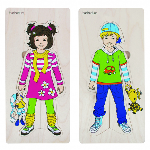 Развивающий Пазл Beleduc Аника и Денис представляет собой увлекательный набор из 13 разноцветных деталей с изображениями частей тела и 2-х рамок-вкладышей. Пазл помогжет даже самым маленьким малышам узнать все части тела человека. В процессе работы включены пальчики и кисти рук, что важно при развитии моторики. Каждый пазл-фигурка разделён на несколько деталей, что позвляет ребёнку не только зрительно, но и тактильно проработать каждую персону данного набора. Процесс работы с пазлами помогает развитию логического мышления, внимания, зрительной памяти, умение соединять части в целое, выстраивать логические цепочки. Все детали выполнены из высококачественных материалов, совершенно безопасных для маленьких детей. Размер: 140 x 293 x 7 мм.
