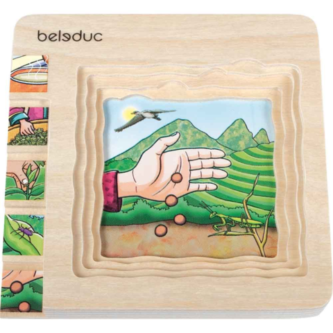 Развивающий пазл Beleduc Чай представляет собой увлекательный набор из 30 разноцветных деталей с изображениями и рамка вкладыш. Из существующих элементов ребенок сможет собрать 5 картинок на тему "что такое чай", детально ознакомиться с чайной культурой и удобно укладывать их в рамку, которая состоит из 5 слоев. Каждый слой в этой серии – это целая история. Ваш юный садовод-огородник сможет воспроизвести картину выращивания чая. В процессе игры у ребенка развивается визуальное восприятие, наблюдательность, он учится различать цвета и формы. Размер: 145 x 145 x 18 мм.