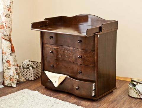 Комод С 567 мебельной фабрики “Красная звезда” оснащен широким откидным пеленальным столиком, что делает пеленание новорожденного малыша безопасным.