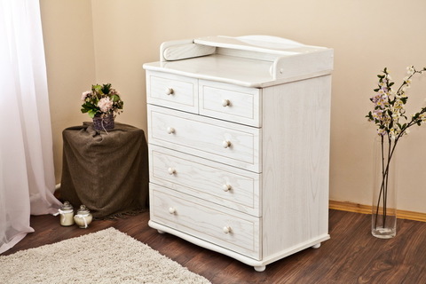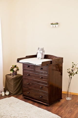 Детский комод С 575 мебельной фабрики “Красная звезда” оснащен широким откидным пеленальным столиком, что делает пеленание новорожденного малыша безопасным. На широком удобном пеленальном столике, малышу и маме будет достаточно места для выполнения массажа, зарядки и других важных процедур. А также, теперь всё необходимое для ребенка будет храниться в лёгкой доступности. Классический комод С 575 без особых излишеств, прост в дизайне и в то же время является самой необходимой вещью в доме, где есть ребенок. Пять глубоких ящика с роликовыми направляющими поместят в себе все вещи ребенка.
