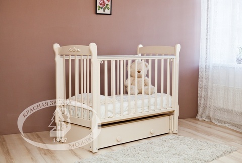Кровать детская КРАСНАЯ ЗВЕЗДА "Артем" С 579 накладка №6 (Шарлотта). Ложе кроватки регулируется по высоте в трех положениях. Мы применяем на верхней планке бокового ограждения защитную накладку, которая защитит кроватку от острых зубов малыша и вместе с тем предохранит от повреждения десны и зубки малютки. Для того, чтобы опустить боковое ограждение нужно одновременно отжать ручки с обеих сторон ограждения. Поднятие и фиксирование осуществляется одной рукой. С помощью этого устройства можно без лишних усилий убрать ограждение и приставить кроватку малыша рядом с кроватью мамы (ЗПУ-7). В данной модели кровати установлены 2 съемные стойки, которые можно легко убрать, чтобы ребенок мог самостоятельно укладываться спать.