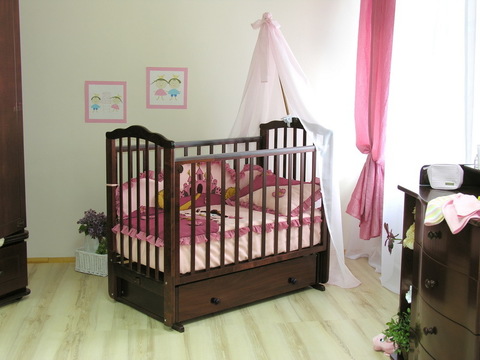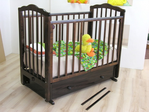 Фигурные верхние планки спинок придают детской кроватке "Элина" неповторимый шарм. Данная модель кровати имеет дополнительную опцию – устройство автоматического качания кровати на пульте управления (приобретается отдельно за дополнительную плату).
