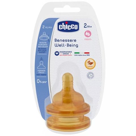 Соска Chicco Well-Being особенно мягкая и эластичная, она точно воспроизводит ощущение материнской груди. Предназначена для бутылочек и аксессуаров Chicco Wellbeing. Рифленые кольца повышают естественную эластичность натурального латекса, соска вытягивается и создает ощущение материнского соска. Анти-коликовый клапан предотвращает заглатывание воздуха, предупреждает возникновение колик, икоты и срыгивания. Особая длина: соска вытягивается во время сосания почти в два раза и становится похожа на материнский сосок.