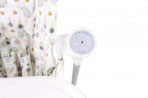 Таймер, рассчитанный на 8, 15 и 30 минут, поможет родителям отвлечься для выполнения насущных дел, в то время, когда их малыш беззаботно раскачивается и наблюдает за подвешенными на дуге игрушками. Можно выбрать любую из 5 скоростей укачивания, включить одну из 12 запрограммированных мелодий, или подключить внешний накопитель и поставить любимую музыку.