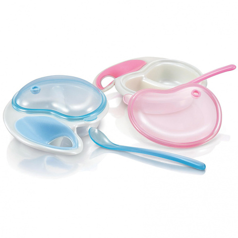 Тарелочка двухсекционная с ложкой Nuby ID5312 - с высокими бортиками прекрасно подойдет для кормления ребенка как холодной, так и горячей пищей. Выполенна из полипропилена. Можно мыть в посудомоечной машине. Не содержит бисфенола А. Кроме тарелки в комплект входит специально разработанная ложка с длинной ручкой; такая ручка облегчает процесс кормления как маме, так и малышу.