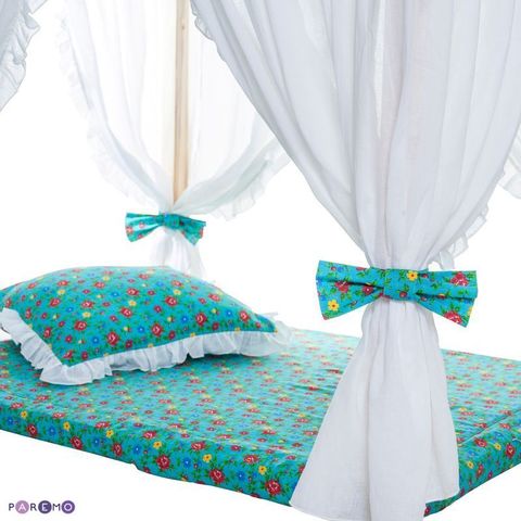 - По периметру домика красивые шторки, которые можно подвязать милыми бантиками к каркасу домика, либо оставить полностью свободными, закрыв внутреннее пространство домика.