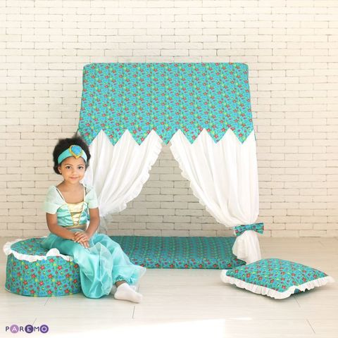 - Текстильный домик-палатка с пуфиком "Дворец Жасмин" разработан для девочек в возрасте старше 3 лет.